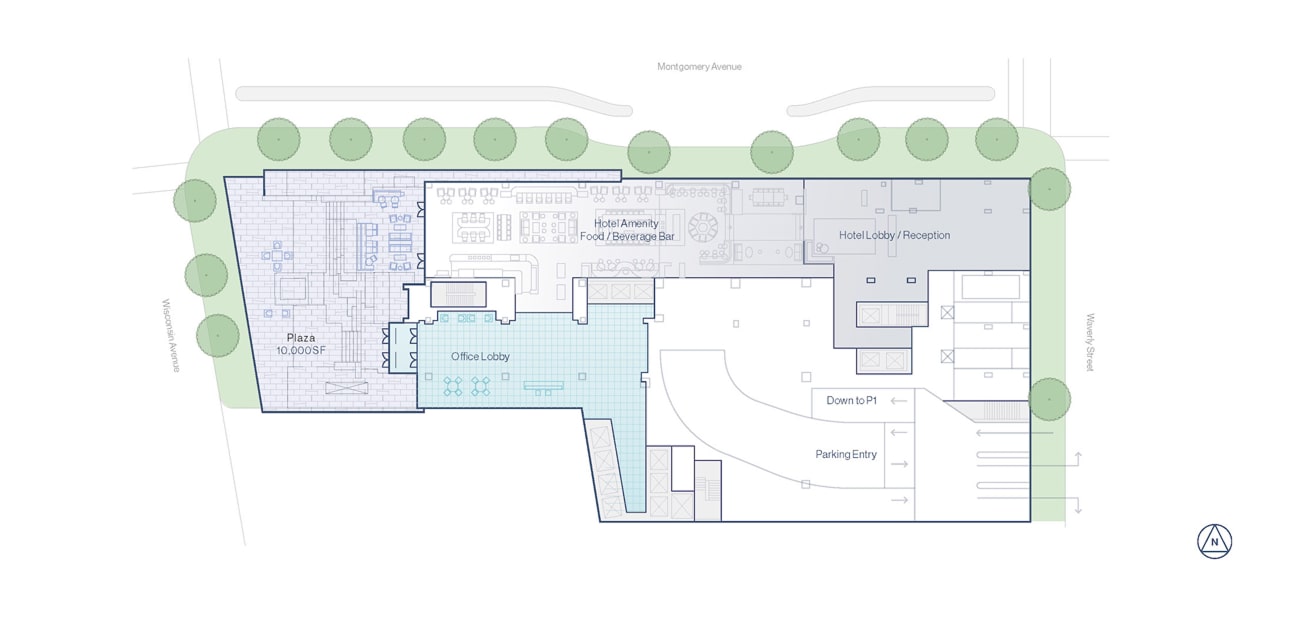 - Amenities: Gym, café, daycare, and rooftop event space.